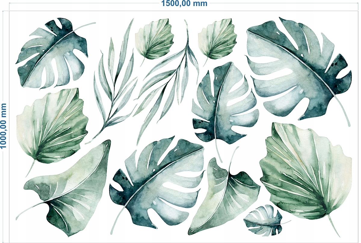 Duże monstery, liście, naklejki na ścianę 150x100cm