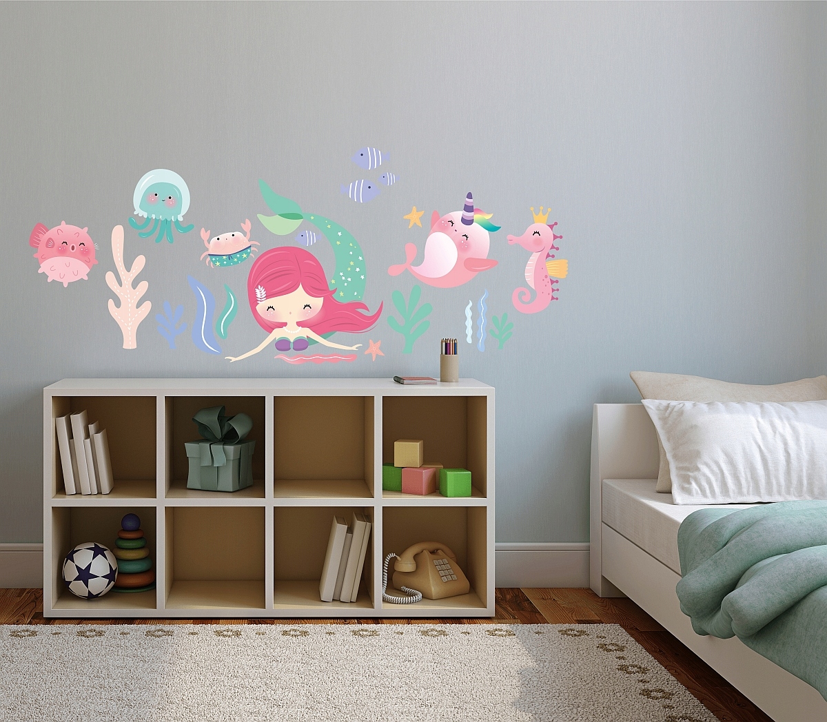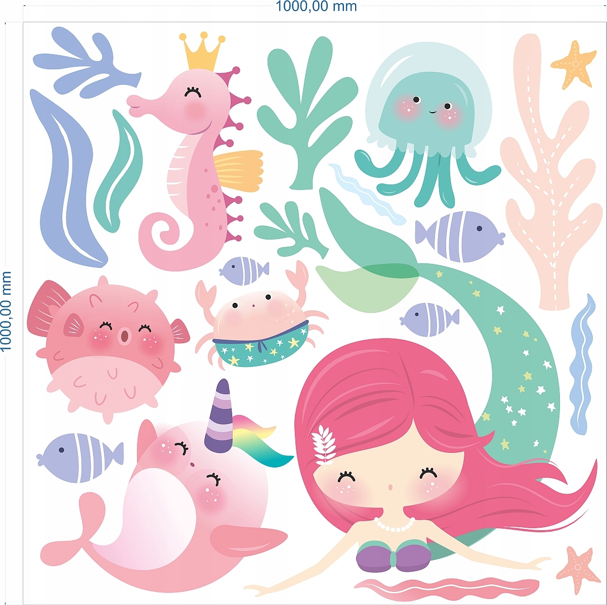 Mała syrenka, rybki, ocean, naklejki na ścianę 100x100cm