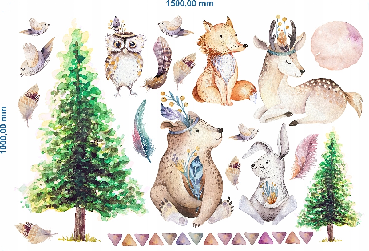 NAKLEJKI NA ŚCIANĘ zwierzątka leśne boho 150x100cm