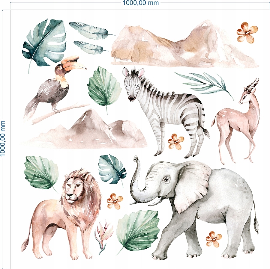 NAKLEJKI NA ŚCIANĘ zwierzęta z dżungli 100x100cm