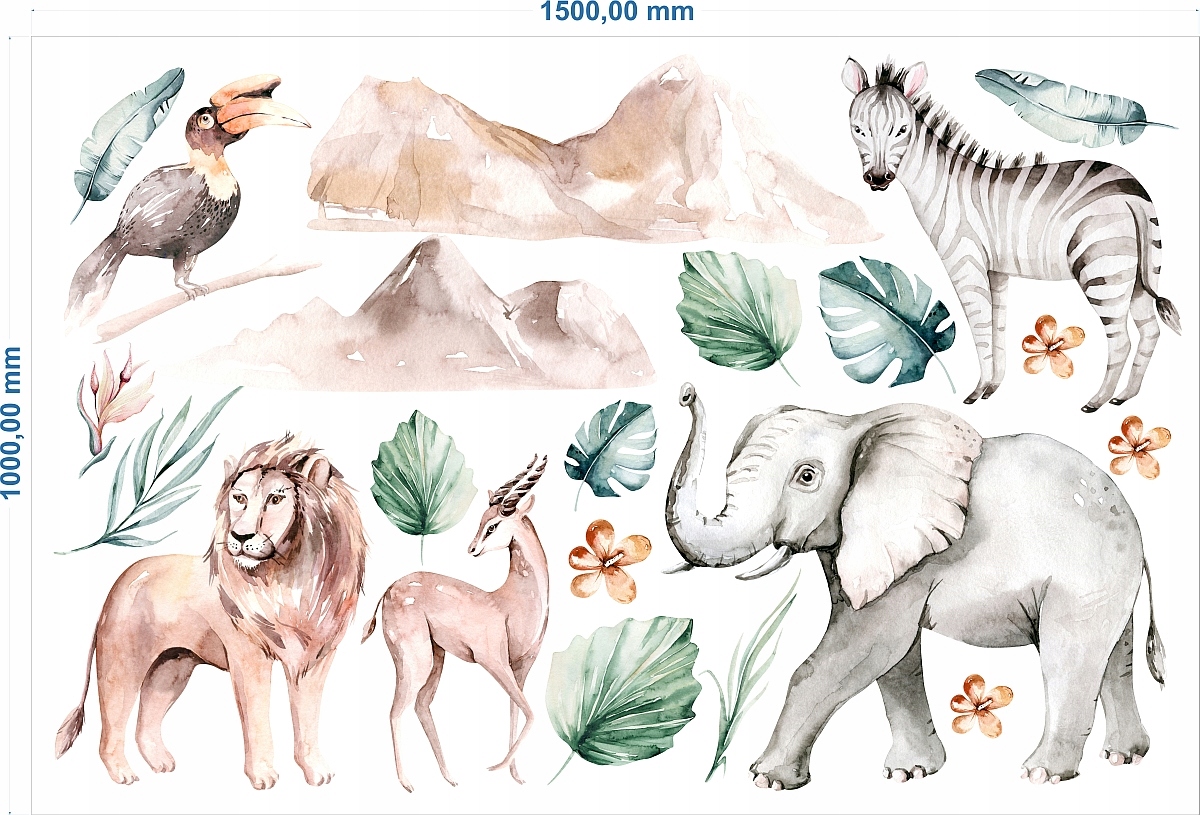 NAKLEJKI NA ŚCIANĘ zwierzęta z dżungli wz1 150x100cm