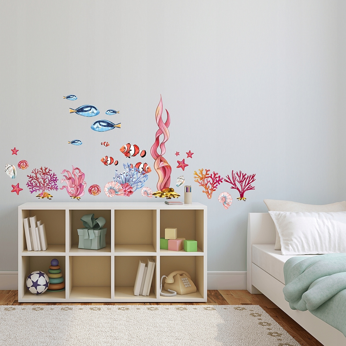 Rybki, ocean, niebo, naklejki na ścianę 100x100cm