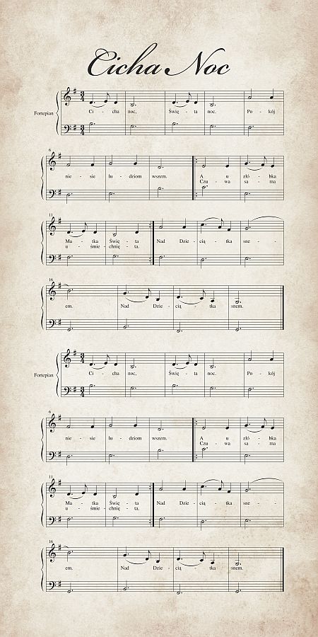 Wprowadź magiczny, świąteczny klimat do swojej przestrzeni dzięki wyjątkowemu wydrukowi wielkoformatowemu na płótnie z nutami kolędy „Cicha Noc”.