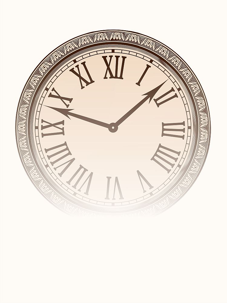 Stylowy panel dekoracyjny przedstawiający klasyczny zegar z rzymskimi cyframi, utrzymany w eleganckiej, beżowo-brązowej tonacji.